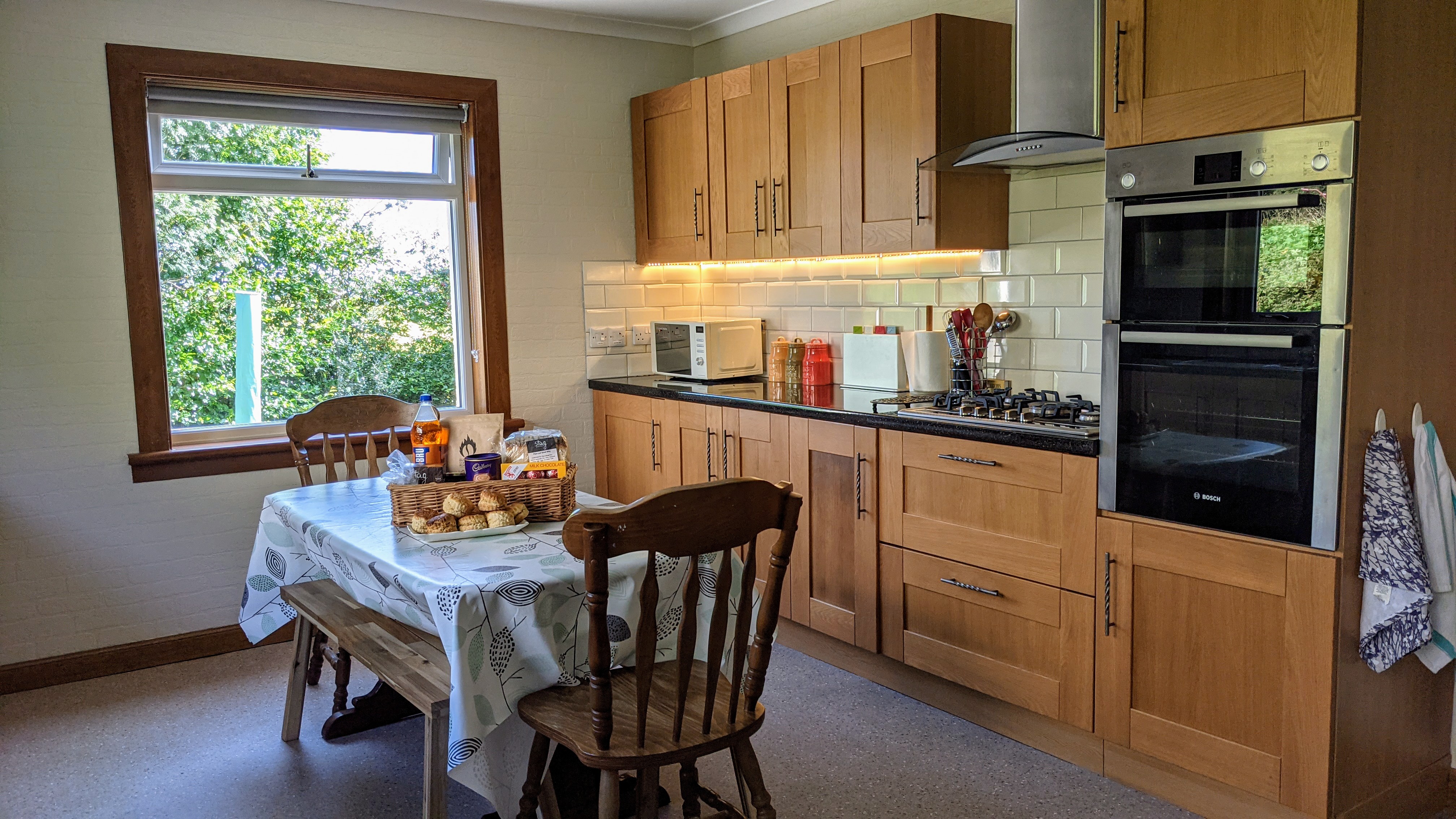 - Fully equipped dining kitchen including gas hob, electric oven, microwave, dishwasher, washing machine