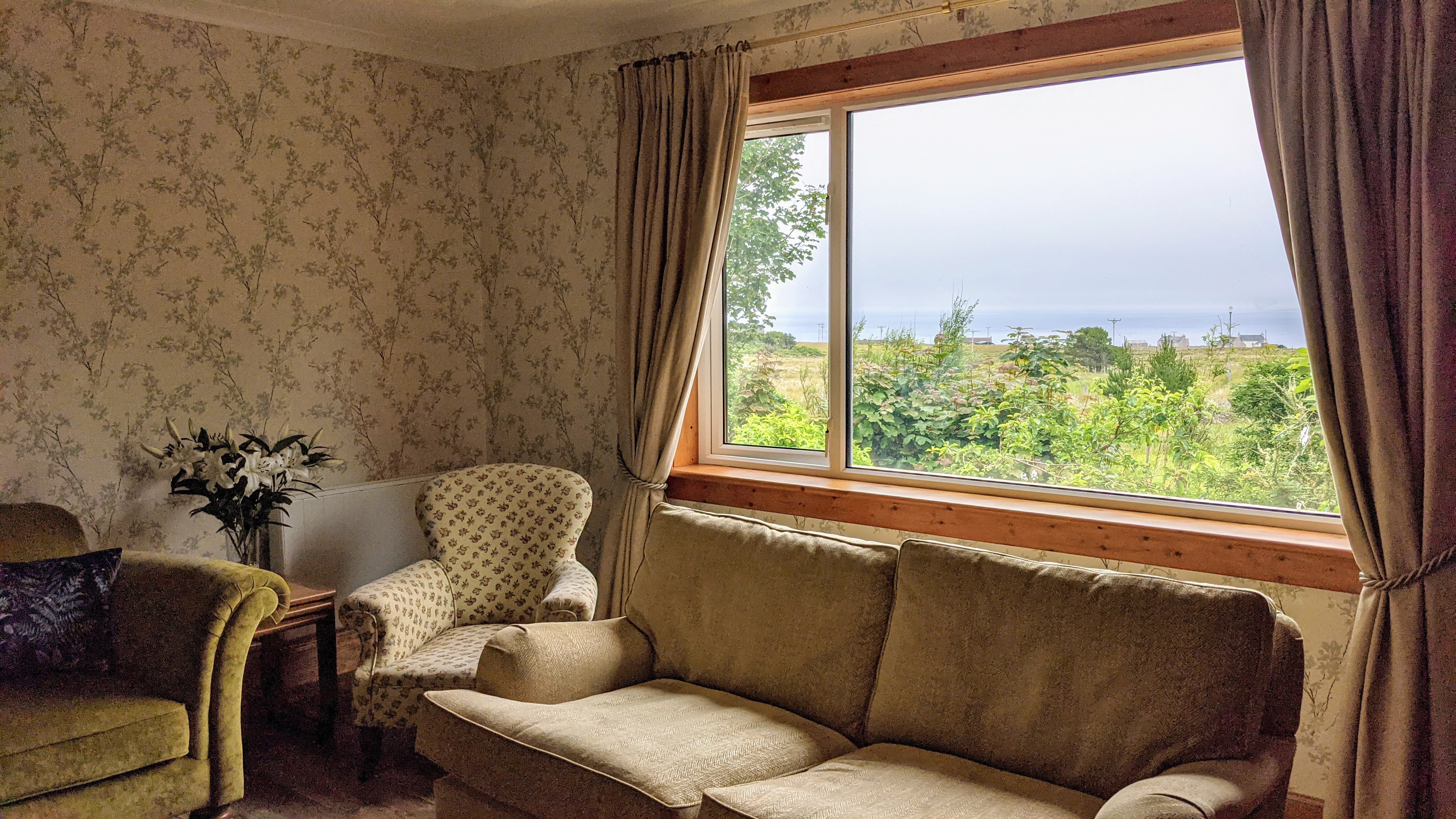 - Living Room with multi-fuel stove, 4K smart TV, blu-ray player with selection of family movies and sea views across to the mountains of the mainland